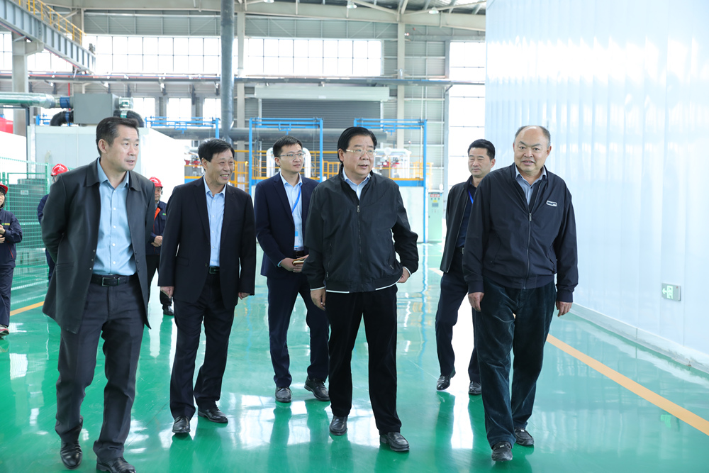 孙方一行听取相关产业发展、工程进度、设备运行、技术路线、产品质量等方面的汇报,并与现场负责人就工程建设、设备性能、技术指标、产能提升等方面进行深入交流。