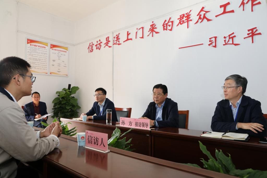 10月28日上午,淮北矿业集团党委副书记、总经理孙方在童亭矿职工群众来访接待室公开接访,面对面倾听职工群众诉求,现场协调、研究解决问题。