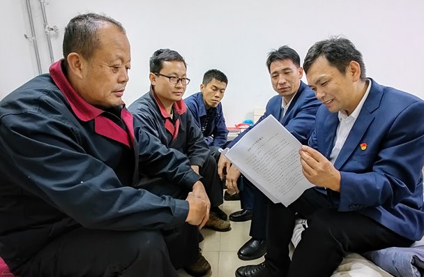 图为近日该矿供销管理科党支部负责人带领支委委员正在组织开展“党的二十大精神”进宿舍活动,引导职工学好用好二十大精神。(撰稿:王爱林 审核:刘海涛 )