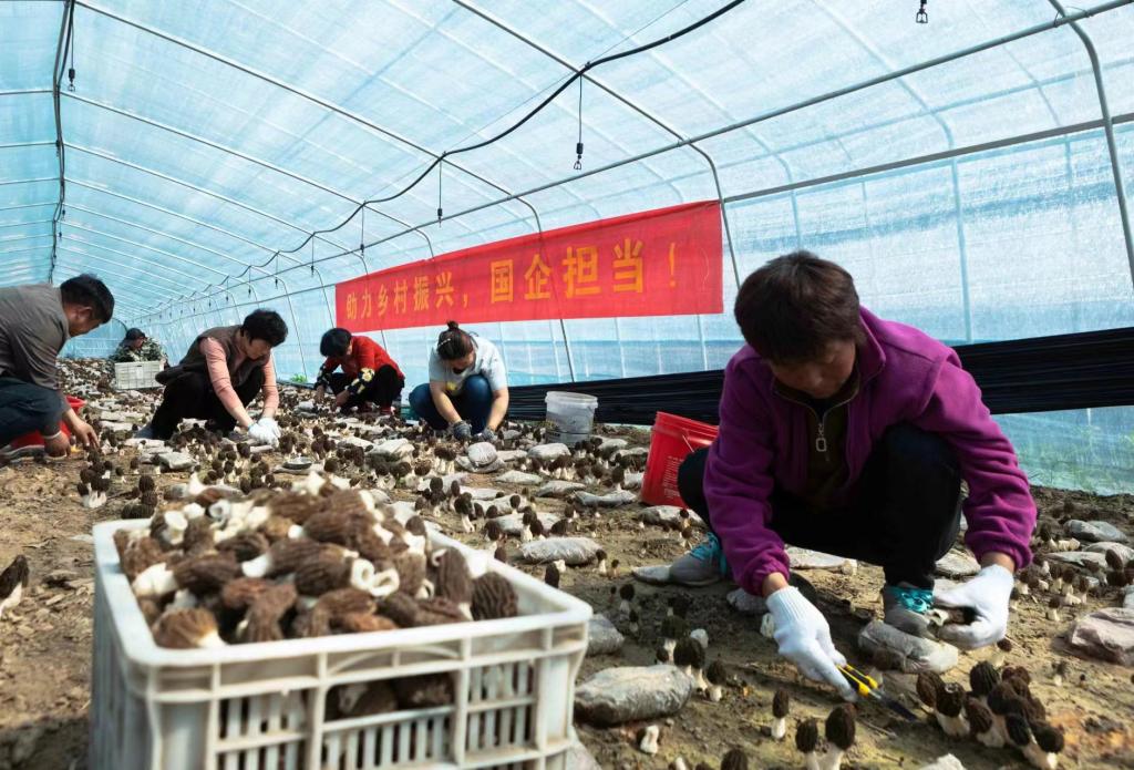 3月29日,在淮北矿业集团援建的砀山县曹庄镇53亩羊肚菌种植基地,村民正忙着采摘、搬运成熟的羊肚菌,一派丰收繁忙景象。