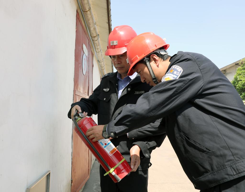 物业公司职工程永、陈燕飞检查消防设施。“节日期间的消防安全尤为重要,越是放假了,我们越是要加大巡查力度,坚决杜绝消防隐患。”(撰稿:王文东 审核:黄庆庆)