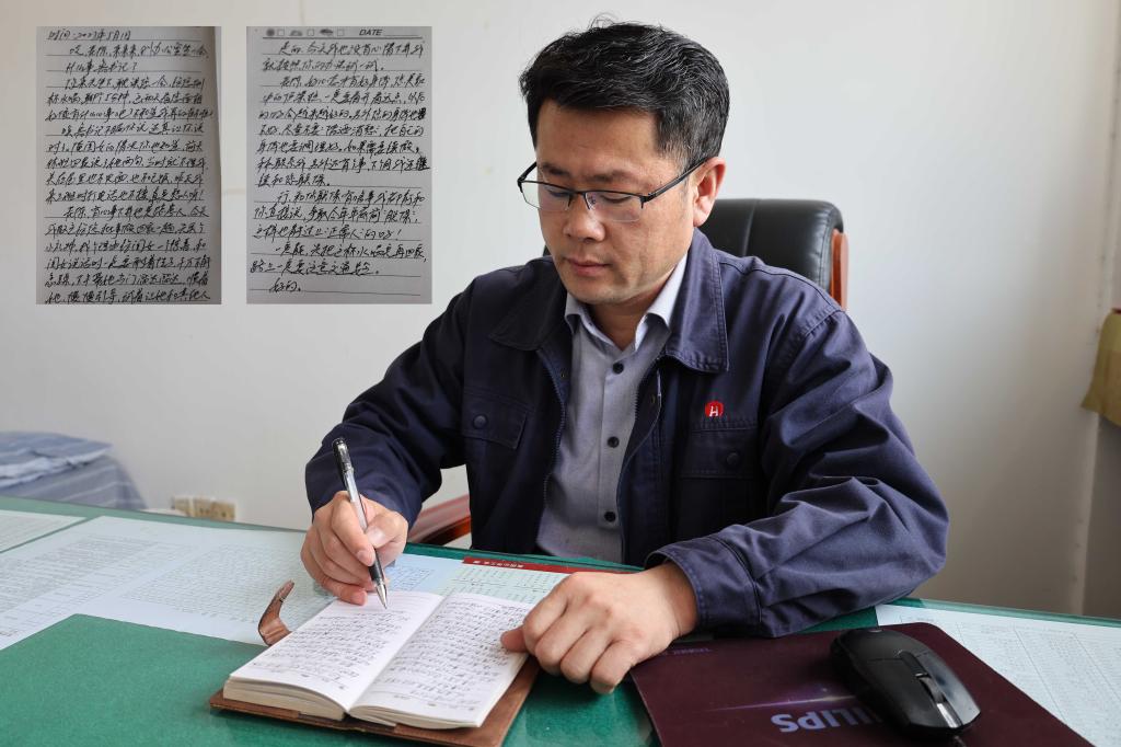 掘进一区党支部书记鲁本岑与职工谈心谈话后,记录“民情日记”。“职工的思想通了,安全工作就更好做了。”