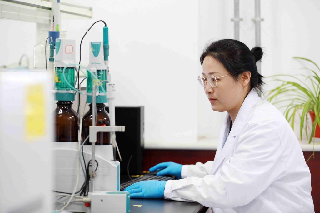 在质量检测检验中心,质检员刘丙丽、王芳芳在做甲醇酸度和循环水硬度分析,虽然停车检修,但仍需每天监测成品罐甲醇质量,确保出厂甲醇质量合格。