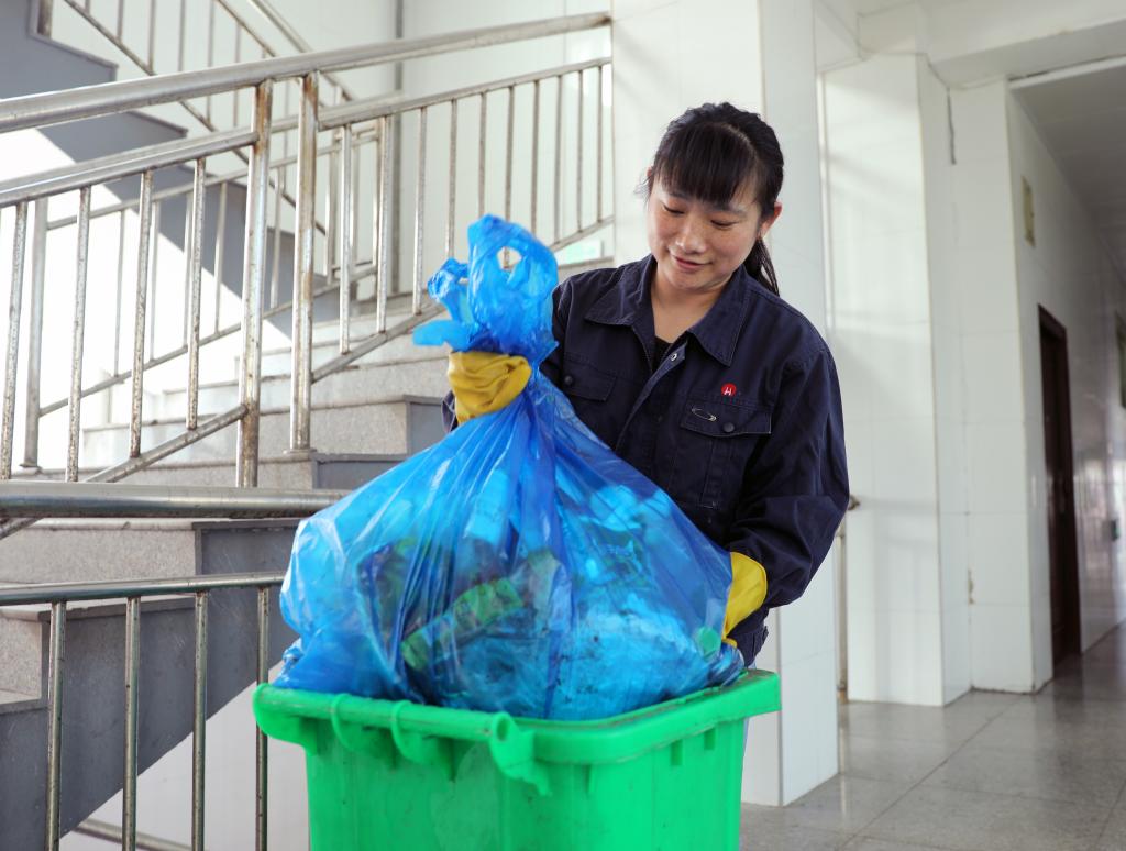 环卫工金菊香正在清扫垃圾。“环境好了,心情也舒畅了,大伙干活也更有劲了,安全也更有保障。”