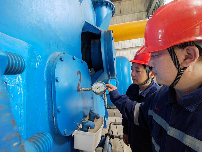 防突区张秀德、陈建两名职工在地面瓦斯抽采泵站巡检,通过听声音、看水位、测压力等定时巡查措施的落实,有效确保瓦斯泵安全运行。(撰稿:徐丽娟 审核:徐燕萍)