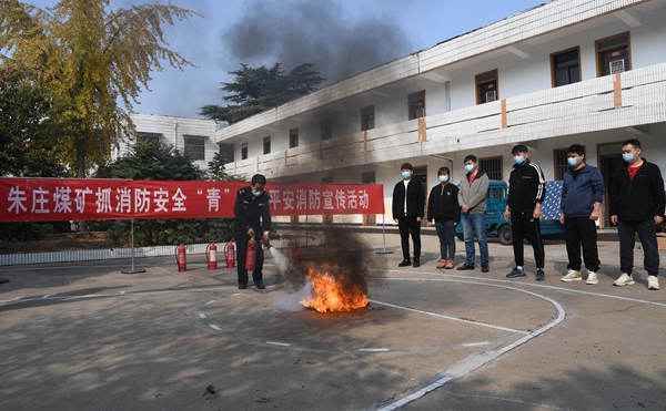 “拔掉安全销后,将灭火器对准火源喷射。”11月8日,许疃矿组织消防知识培训及演练,来自该矿各基层单位的兼职消防员参加。