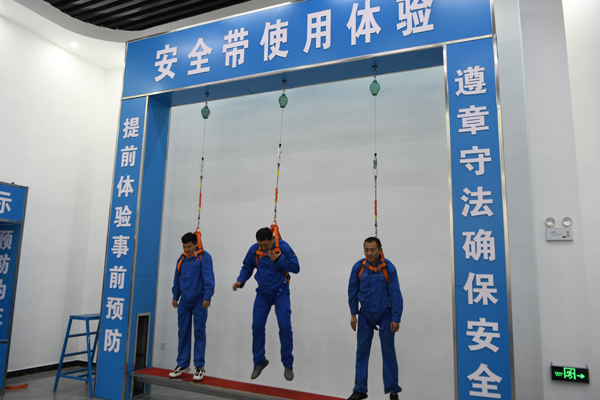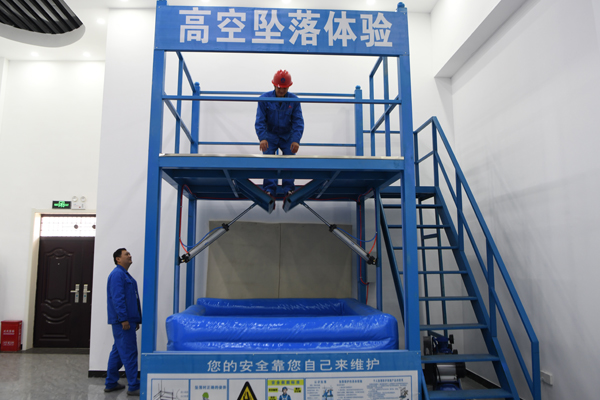 在高空坠落体验区,讲解员向参训职工详细讲解了注意事项,让职工体验了从高空坠落的感觉。“真是有点怕,在工作中还是要严格遵守安全操作规程,树立安全第一的思想”,一名参训职工深有感触地说。