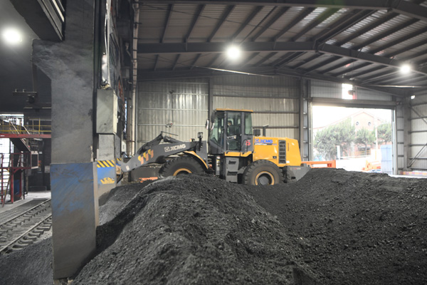 一旁,煤炭管理部铲车司机李祥海和他的工友们趁着货车出场和下一辆货车进场的间隙,正娴熟地将外购煤一铲一铲推进受煤坑。“在当前条件下,外购煤来之不易,我们更应该倍加珍惜,确保洗出效益,为转型发展出力流汗,虽然累,但心里也踏实。”