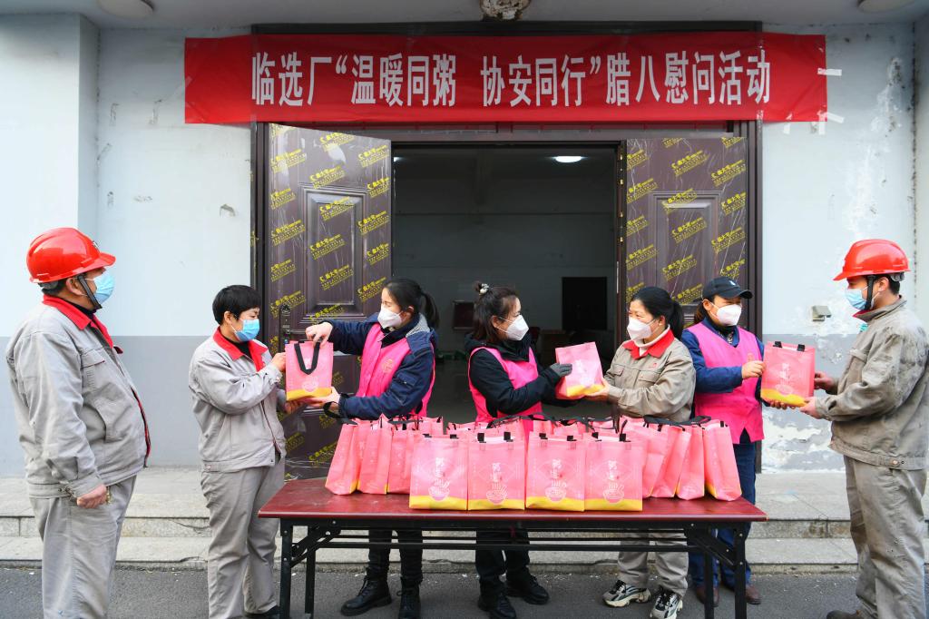 12月30日是我国传统的腊八节,临涣选煤厂工会开展“温暖同粥协安同行”腊八节送温暖慰问活动,组织女工协安员将装有八宝粥、面包和鸡蛋的“腊八礼包”送到一线车间班组和生产岗位现场的职工手中,嘱咐他们生产再忙,安全不忘,平安过节。(撰稿:石启元 庞莉莉 审核:朱丽)