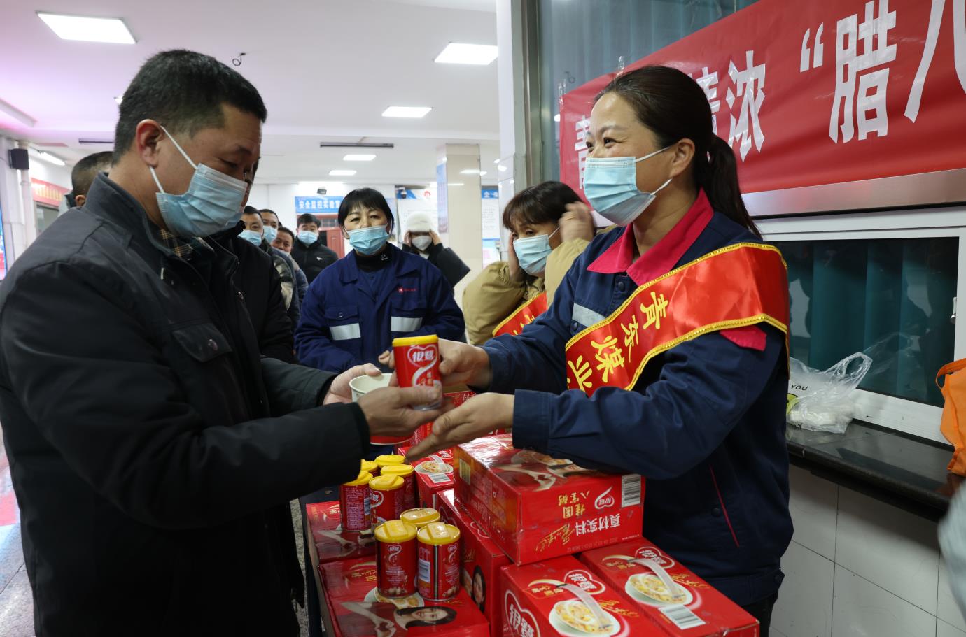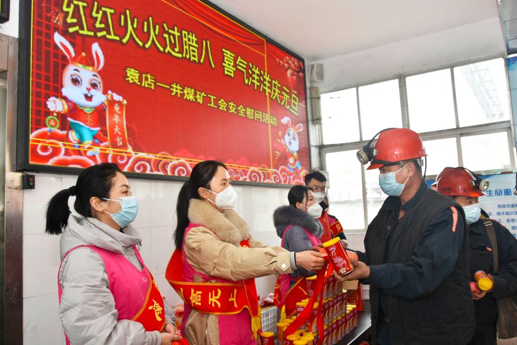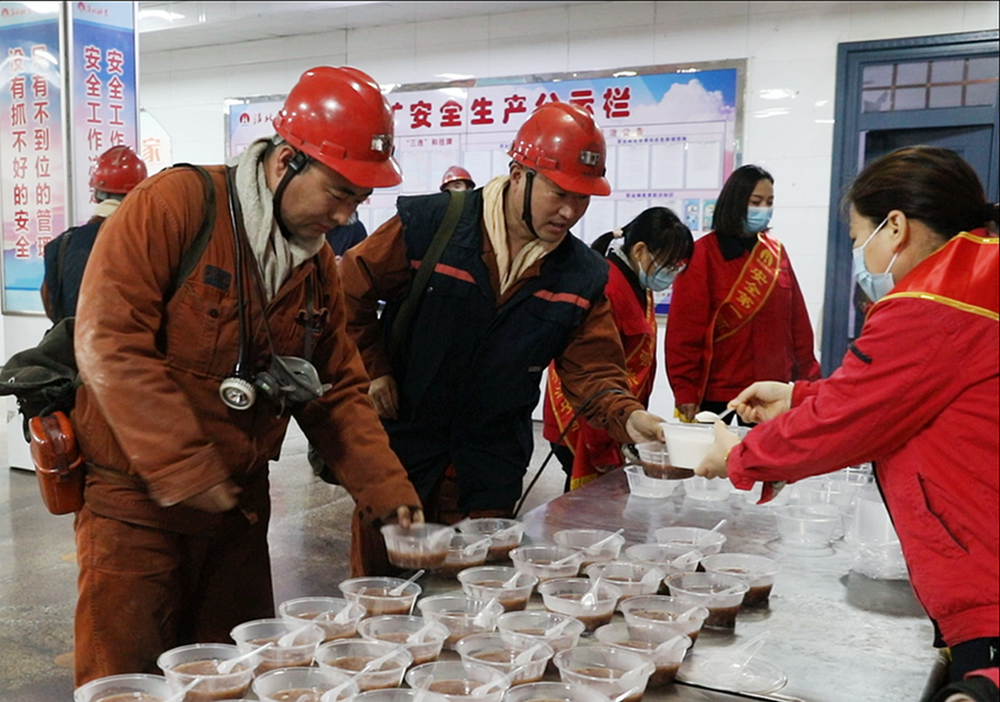 “师傅辛苦了,来喝碗腊八粥”“下井一定注意安全”,腊八节前夕,涡北矿工会开展“浓情腊八粥亲情保平安”慰问活动,女工协安员们在矿井口一边说着,一边递上一碗香喷喷的腊八粥。她们以“严管+真爱”为主线,用真情和关爱去感化职工,用一碗碗腊八粥为职工送去了亲情般的平安祝福。