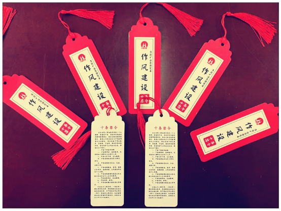 “小小的书签,既精美又实用,方便我们随时随处学习,也如同一面镜子,让我们时常对照提醒自己,明白什么是集团公司坚决反对和严厉打击的,是否真正践行了作风建设的各项要求。可以警示我们紧绷纪律之弦,规范自己的日常行为规范。”经营管理部党支部书记代言猛在收到一份特殊的礼物——“十条禁令”“小书签”时说道。