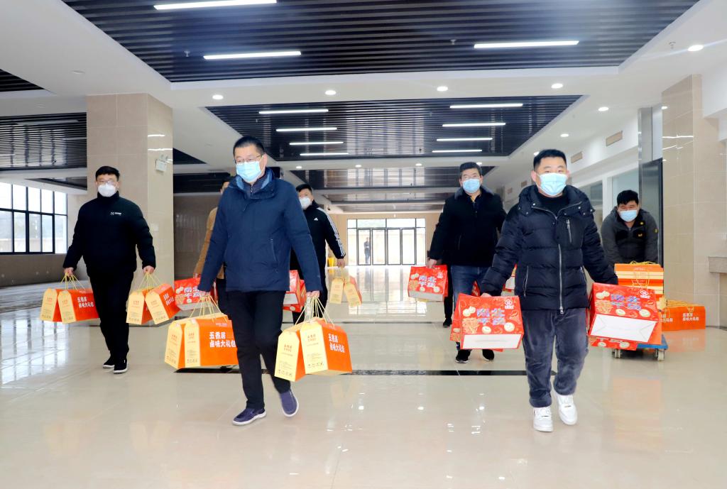 上午9时40分许,新综合实训楼一楼大厅热闹非凡,该院领导在现场把一箱箱“南北干货”、“卤味大礼包”发放到教职工手中,送上学校“大家庭”的关怀和温暖。“感谢学校对我们员工的厚爱,新一年要在新征程上争取更大的成绩。”手里拿着大礼包的教职工喜笑颜开。
