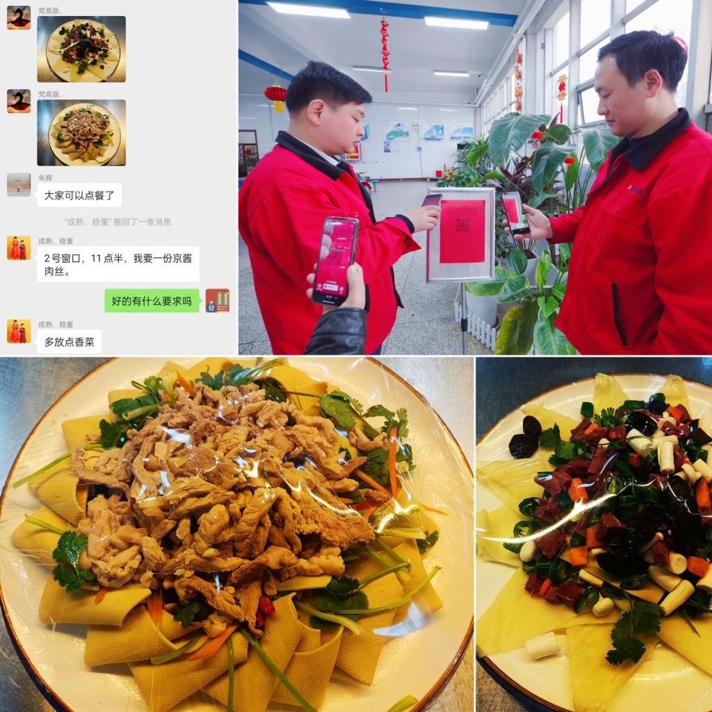 近日,涡北矿职工食堂开通了微信群,将每日餐饮的品种和图片发布在微信群上,供广大职工选择,职工可以通过微信群了解当天的餐饮品种,提前预定自己喜欢的菜品。通过快捷扫码,提前预订将选餐步骤前移,省去窗口排队选餐,极大缩减就餐时间,提升食堂服务水平,减少职工等待时间,提高职工满意度。