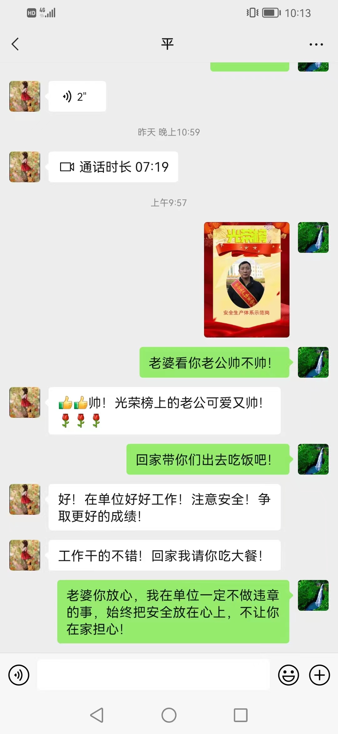 近日,被评为矿2月份安全生产体系示范岗的祁南矿修护区职工韩军响和妻子的一段微信对话截图,刷爆了该区微信群。
