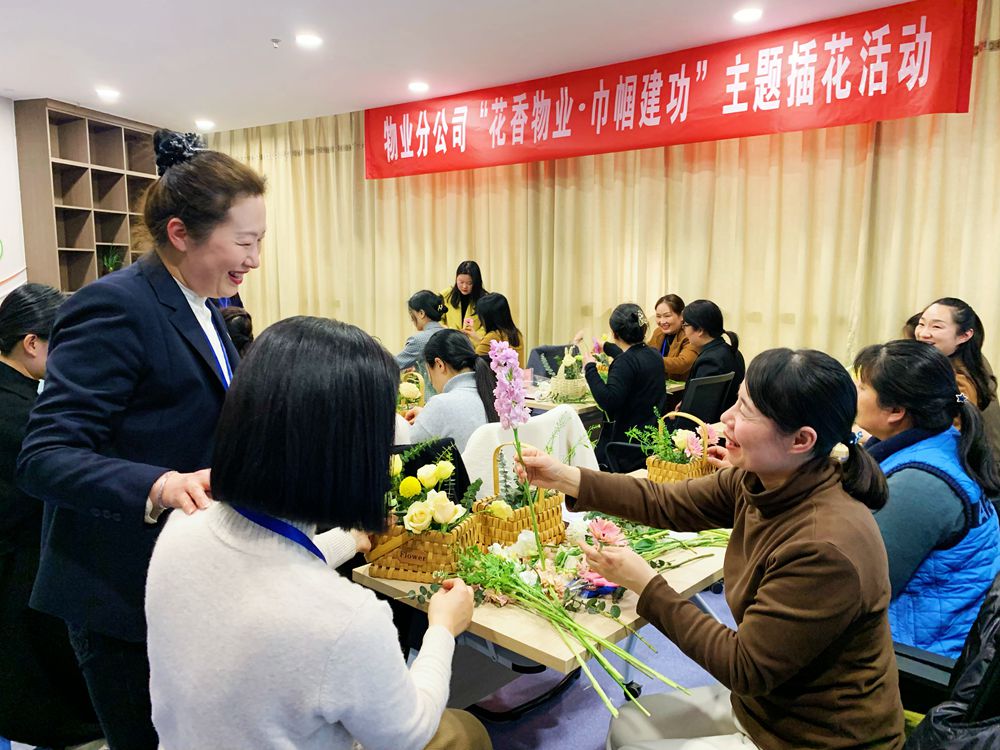 3月6日下午,物业分公司开展“花香物业 巾帼建功”三八妇女节主题插花活动,邀请专业花艺老师现场指导花束大小、颜色搭配,讲解有关插花艺术的注意事项。交流分享自己的新颖构思,花束作品,合影留念。(撰稿:薛全 审核:曹红)