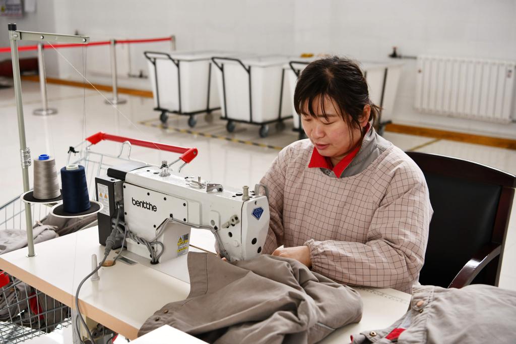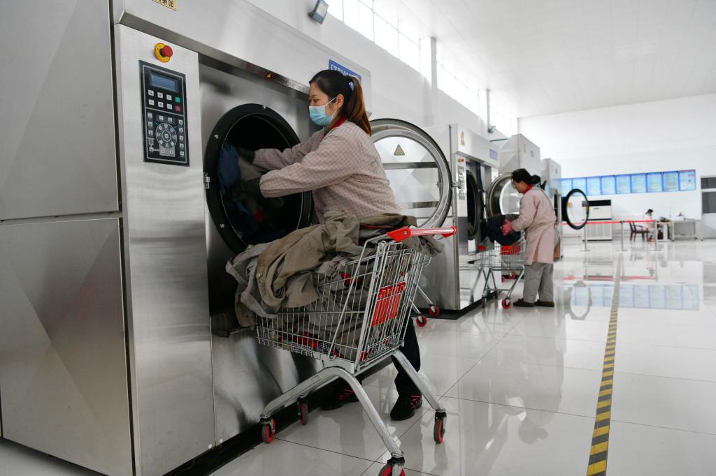 3月17日,临涣选煤厂洗衣中心工作人员正在为职工洗涤、缝补、整理工作服。该厂在职工洗衣中心配备滚筒洗衣机、烘干机及缝纫机的基础上,持续增设缝补工作服、截裤腿、钉扣子等微服务项目,为职工提供周到暖心的民生服务,办实事、做好事、解难事,深受职工欢迎。