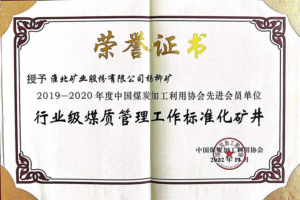近日,从中国煤炭加工利用协会传来喜讯,杨柳矿荣获“2019—2020年度中国煤炭加工利用协会先进会员单位行业级煤质管理工作标准化矿井”荣誉称号,这是该矿持之以恒强化煤质管理结出的硕果。