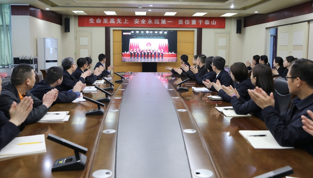 4月27日,朱仙庄矿组织干部职工收看集团公司2022年度先进集体、先进个人表彰大会直播。
