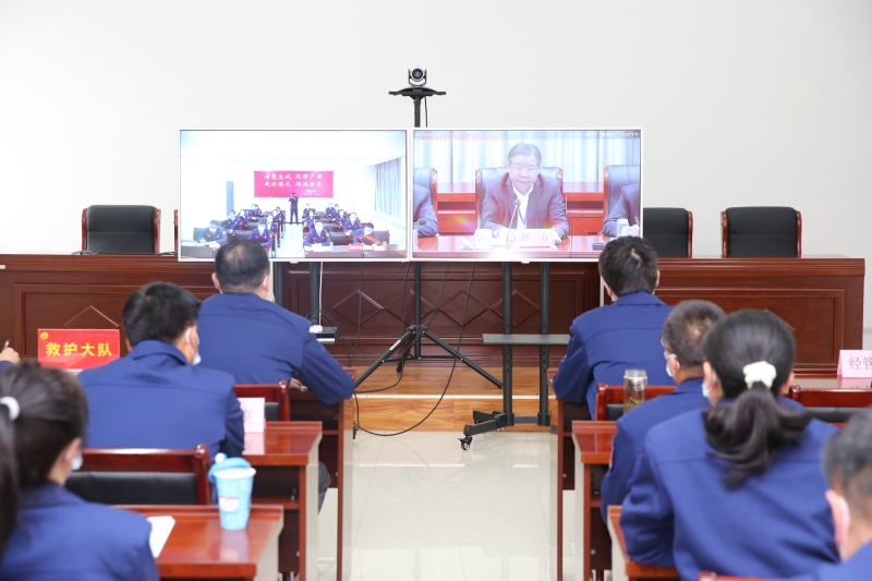 4月28日,救护大队在视频会议室组织收看淮北矿业集团5月份安全生产视频会,会后对如何迅速贯彻落实会议精神以及对近期安全工作提出具体要求。(撰稿:吴加奇 审核:余磊)