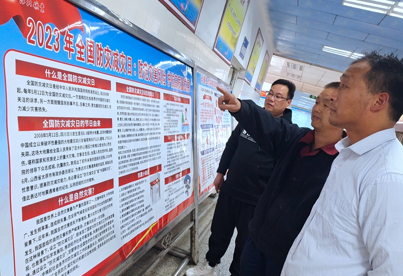 今年5月12日是第15个全国防灾减灾日,5月6日至12日为防灾减灾宣传周。为深入贯彻国家、省、市、淮北矿业集团相关要求,全面做好防灾减灾工作,孙疃矿专门下发活动通知,要求矿、科区、班组三级联动,紧紧围绕“防范灾害风险,护航高质量发展”主题,利用会议、公开栏、展板、井口电子屏、下基层宣讲、有奖竞答等多种形式,广泛宣传发动。“防灾减灾宣传周”期间,该矿还将开展防灾减灾相关知识专项培训、应急演练等活动,在强化全员防灾减灾意识的同时,进一步提高全员的防灾减灾技能水平。图为5月6日,孙疃矿3名职工正在井口文化长廊驻足观看“2023年全国防灾减灾日”相关知识写真牌板。(撰稿:张雯 徐琪 审核:陈菲菲)