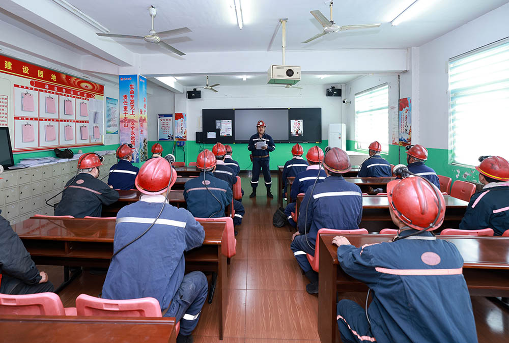 每到班前会召开时刻,朱仙庄矿采掘办公楼各大会议室总是传出响亮、整齐划一的宣誓声,走进会议室,穿着整齐工装的班组人员,让人耳目一新、精神振奋。煤矿安全综合整治活动开展以来,朱仙庄矿把班前会作为强化职工安全思想教育的重要载体,严抓班前会质量,筑牢安全“第一道防线”。