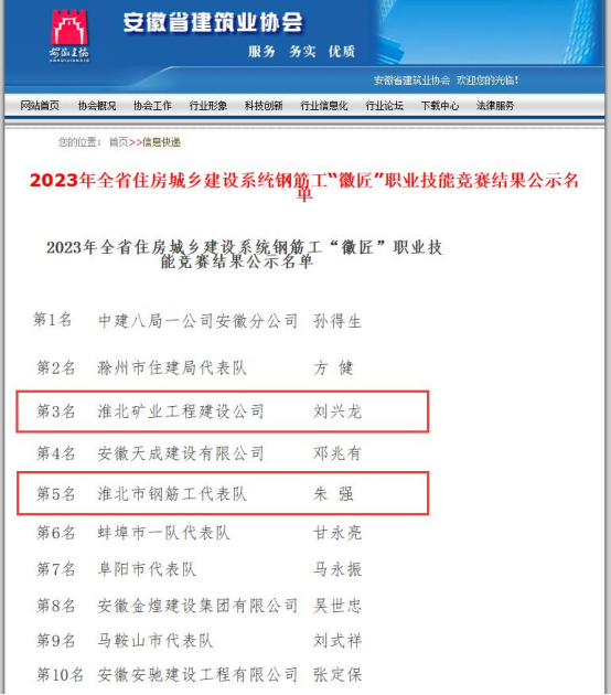 工程建设公司选手在全省钢筋工“徽匠”职业技能竞赛中获佳绩