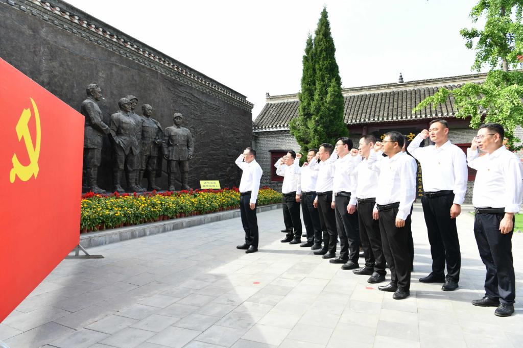 5月11日下午,临涣选煤厂主题教育读书班学员在临涣镇淮海战役总前委旧址伟人雕像前,面对鲜红的党旗重温入党誓词,缅怀革命先烈,接受革命传统教育,回顾党的光辉历程,赓续红色血脉,传承红色基因。